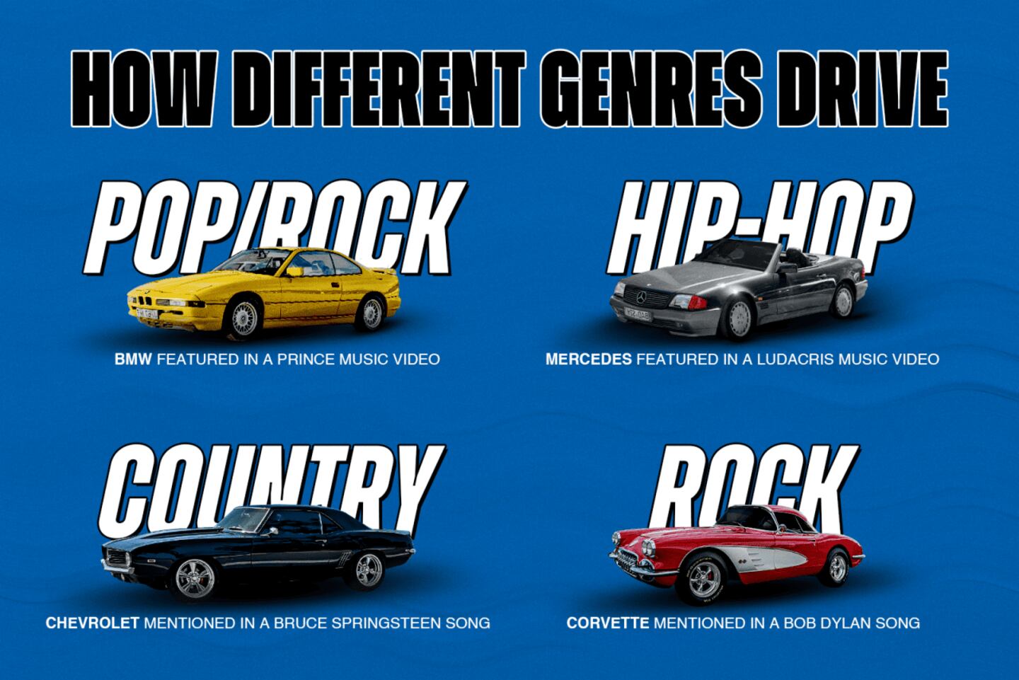 Cars and music are woven into the fabric of American culture. Artists have sung about cars and the open road since the early 1900s, and, regardless of genre, cars — and trucks — still serve as musical metaphors for freedom, ambition, and self-expression.