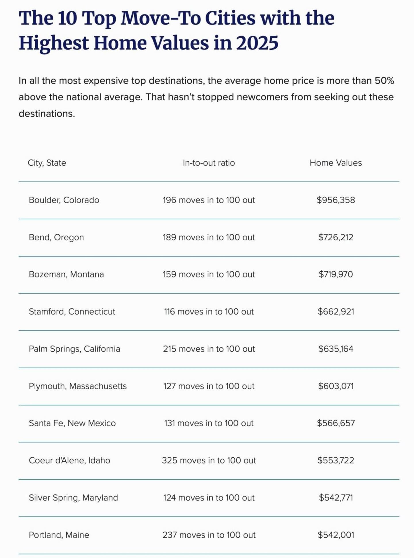 The 10 Top Move-To Cities with the Highest Home Values in 2025