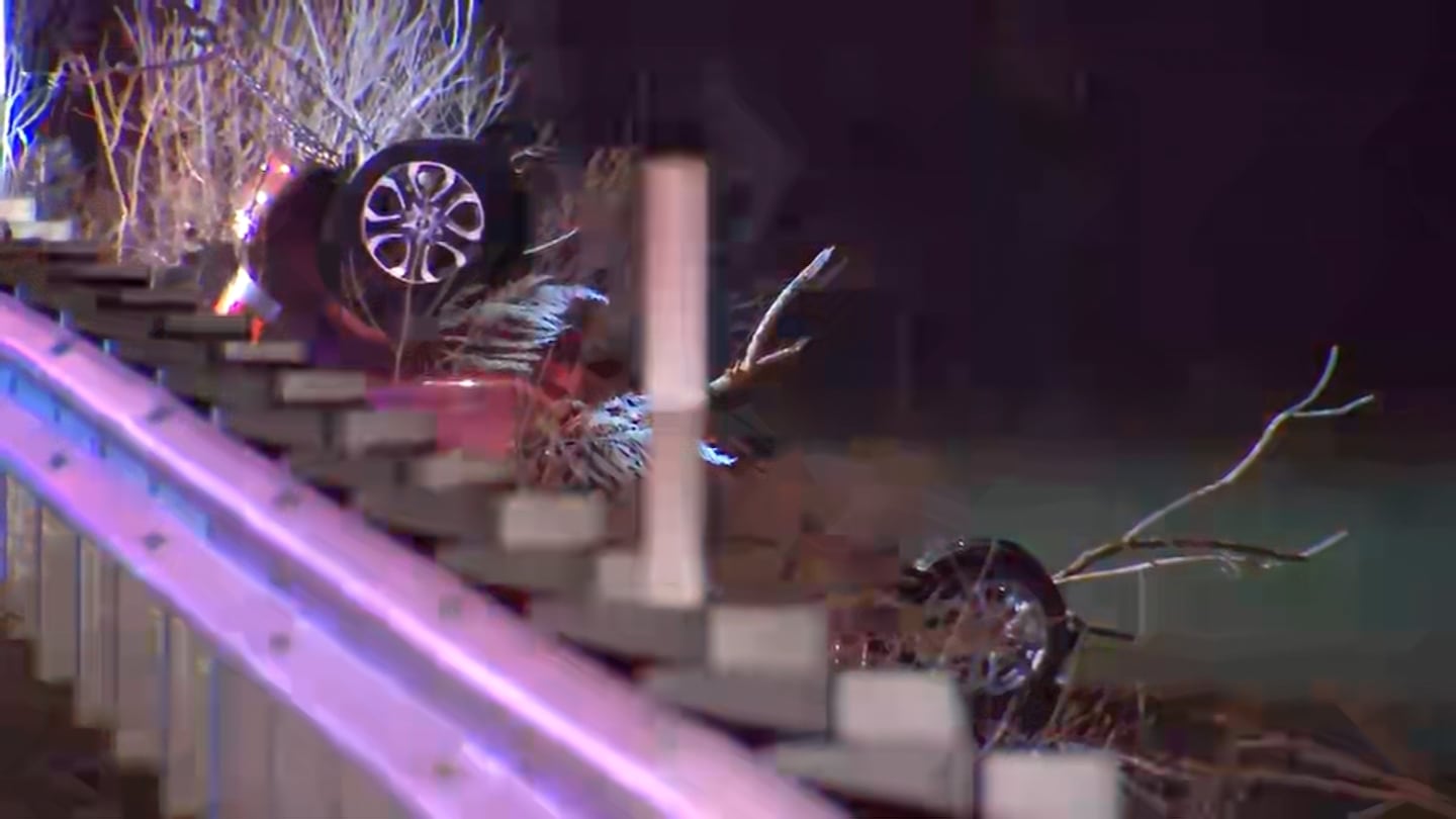 According to first responders, the driver was coming down Route 38 when he crossed over the white line, then lost control — flipping the Toyota Yaris in the air multiple times and landing upside down partially in the water.