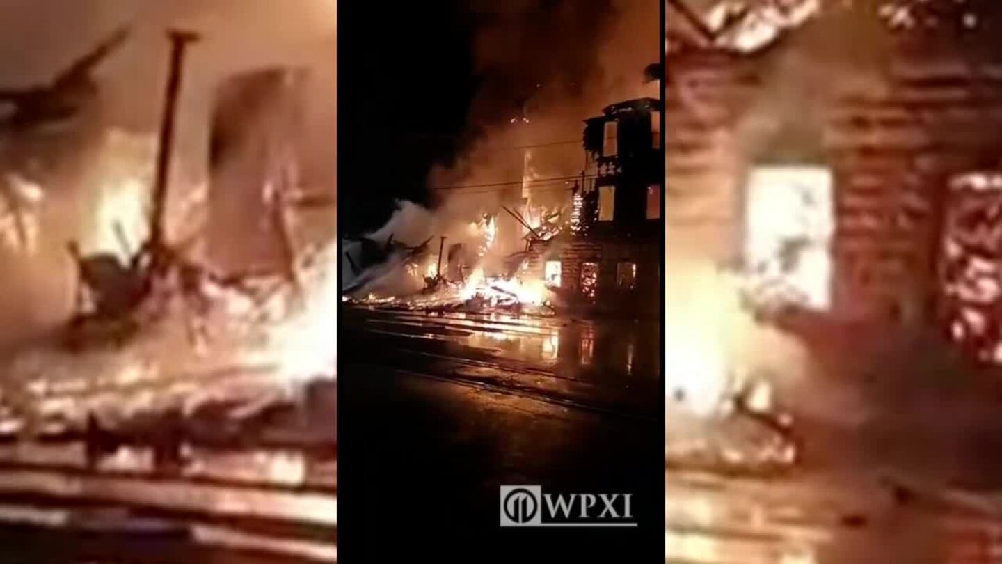 Pennsylvania state police have asked for the public's help to identify two men seen on security camera footage and a truck spotted in a parking area shortly before the fire started.