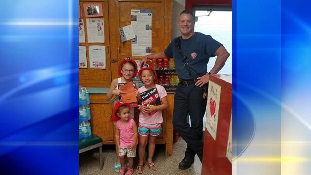 The three girls, Annabelle, Gabby and Liviy, stopped to donate water and Gatorade to the firefighters so they can stay hydrated while fighting fires.