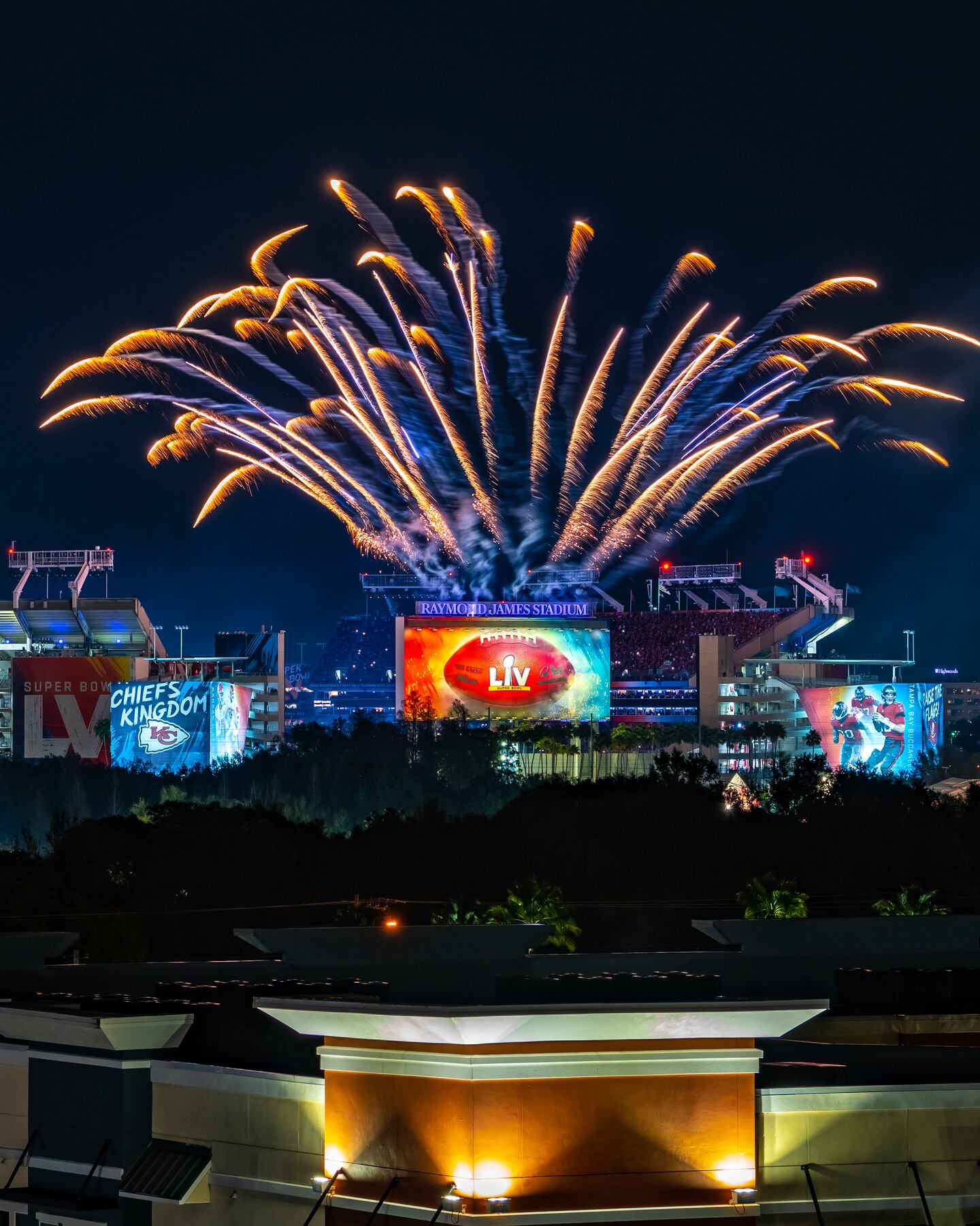 This included effects at a whole week’s worth of festivities before the game, extending to player introductions, the national anthem, the halftime show by The Weeknd, and the post-game pyrotechnics.