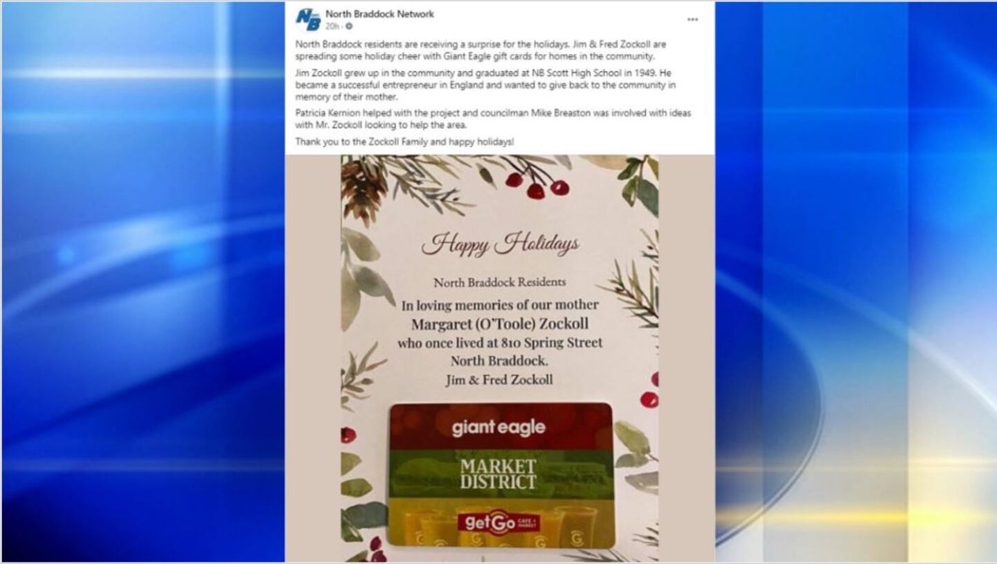 Jim and Fred Zockroll sent Giant Eagle gift cards to people who live in the community, according to a post on the North Braddock Network Facebook post.