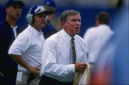 Johnny Majors Pitt 21 Oct 1995: Head coach Johnny Majors of the Pitt Panthers looks on from the sideline as he watches the Panthers 17-16 loss to the Miami Hurricanes at Pitt Stadium in Pittsburgh, Pennsylvania. (Ken White/Getty Images)