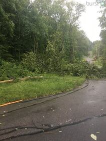 WPXI SHEFFIELD AVE SLIDE A rock slide has closed two roads Friday in Beaver County. (VIEWER SUBMITTED)