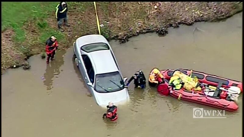 Kania described what she saw this morning at Lake Dom in Greenawalt, Westmoreland County when a car was found submersed.