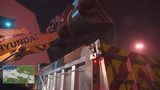 Investigators said a semi-truck jack knifed crashed into a barrier and the truck's driver was taken away in an ambulance.