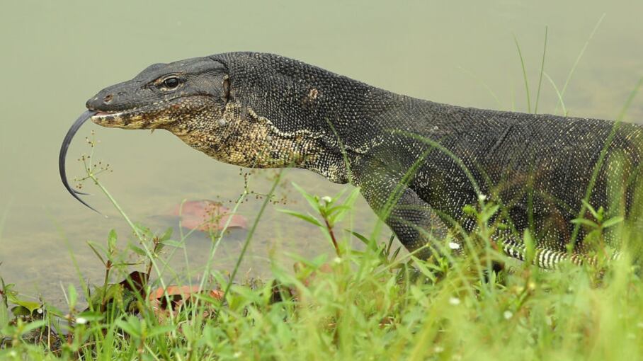Nile monitor lizards can grow up to 5 feet and weigh 15 pounds. They like to munch on small animals, fish and eggs.