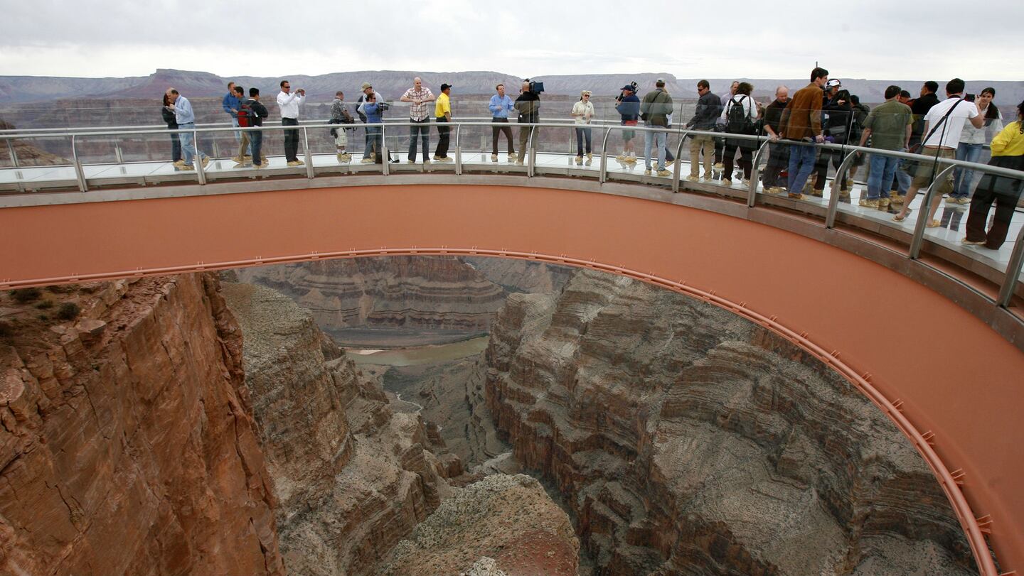 , the Skywalk, which is managed by the Hualapai Tribe and located on tribal lands, consists of a horseshoe-shaped steel frame with a glass floor and sides that projects about 70 feet from the canyon rim.
