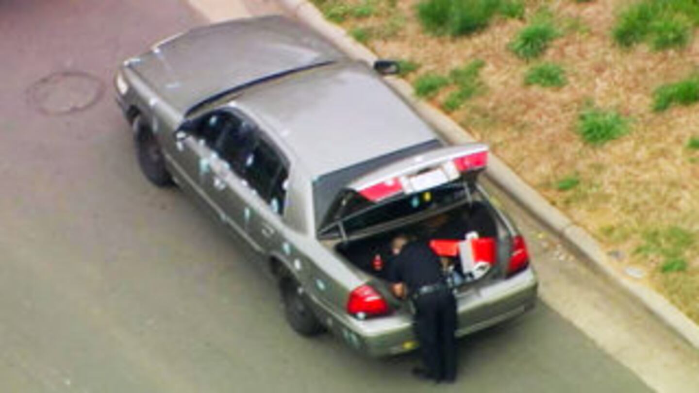 flew over the scene Wednesday along Arrowood Road, where police had pulled over two vehicles that were covered in paint.