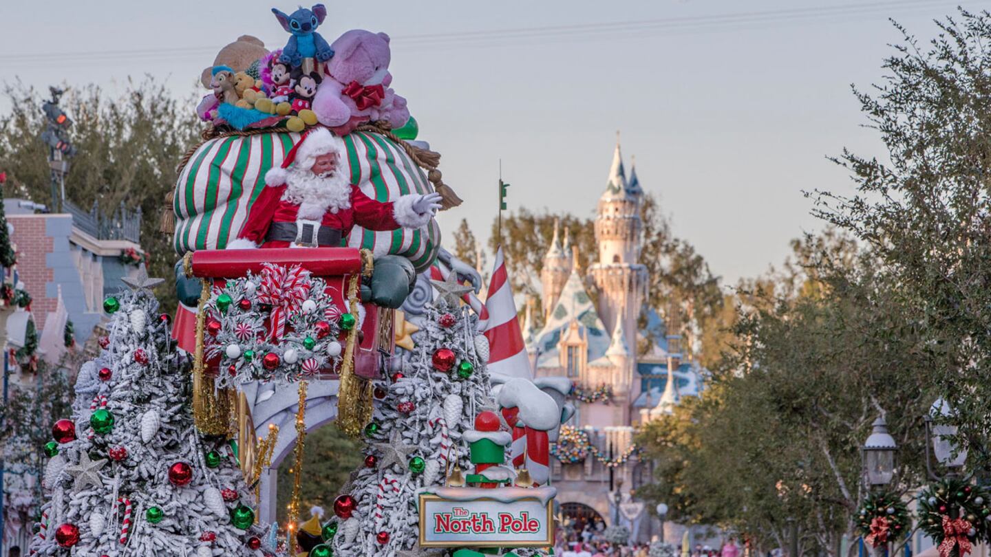 ORANGE COUNTY, Calif. — Good thing Santa is used to shimmying down a chimney. His rosy outlook and his comfort with heights came in handy when a float failed during an afternoon parade at Disneyland.