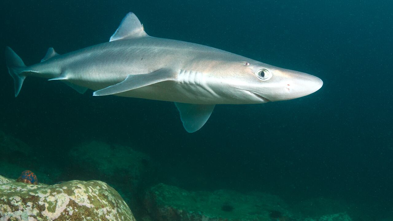 Dogfish are small coastal sharks with a dark brown or gray body and a white belly.