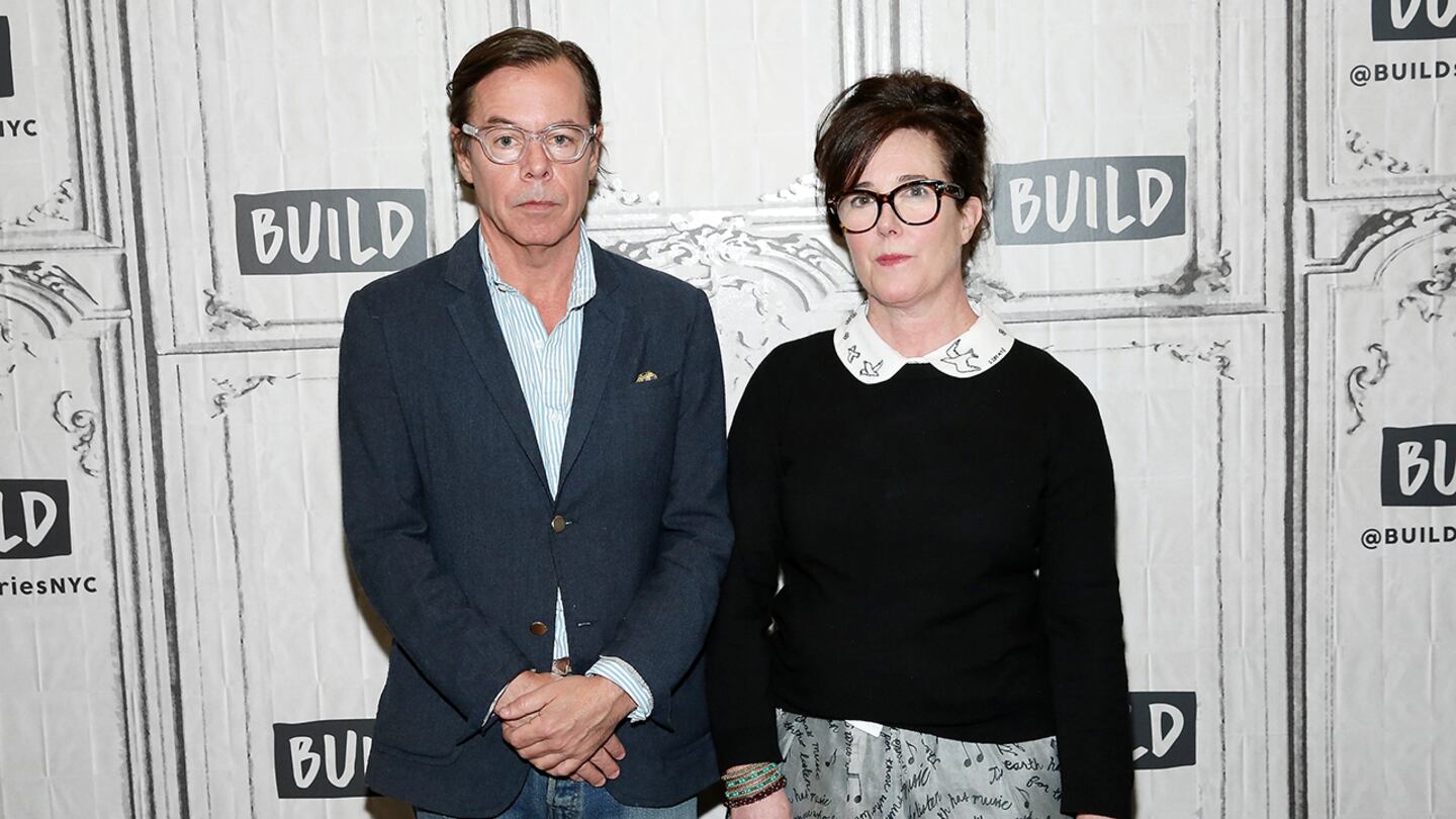 Andy Spade (L) and Kate Spade attend Build Series Presents Kate Spade and Andy Spade Discussing Their Latest Project Frances Valentine at Build Studio on April 28, 2017 in New York City. Kate Spade was found dead of an apparent suicide in 2018.