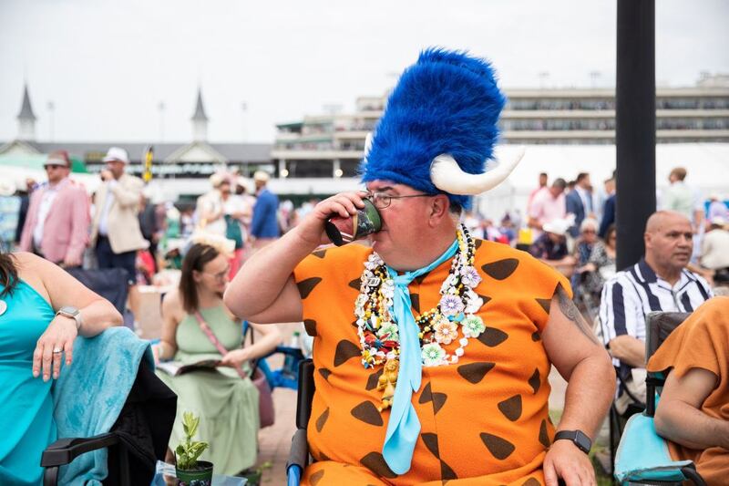 2023 Kentucky Derby: Yabba dabba doo: A spectator enjoys the atmosphere before the 149th Kentucky Derby. (LEANDRO LOZADA/AFP via Getty Images)
