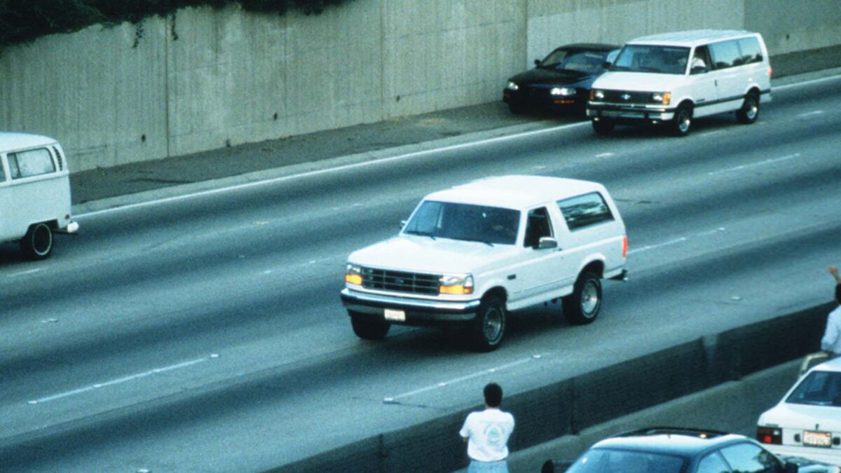 On June 17, 1994, Simpson famously lumbered on a Los Angeles freeway for more than 90 minutes in a low-speed pursuit by police in a white 1993 Ford Bronco. The Bronco was owned and driven by Simpson’s friend, Al Cowlings. TV stations across the country interrupted the NBA finals to air the 60-mile chase with roughly 95 million viewers watching the pursuit.