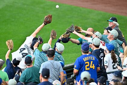 2023 All-Star Game: Fans reach for a foul ball during the All-Star Game at T-Mobile Park. (Alika Jenner/Getty Images)