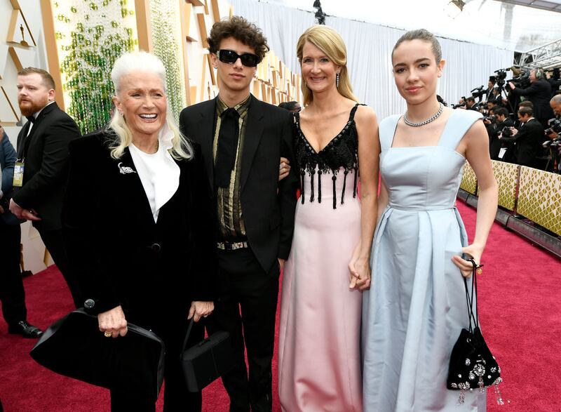 92nd Annual Academy Awards - Arrivals HOLLYWOOD, CALIFORNIA - FEBRUARY 09: (L-R) Ellery Harper, Jaya Harper, Diane Ladd, and Laura Dern attend the 92nd Annual Academy Awards at Hollywood and Highland on February 09, 2020 in Hollywood, California. (Photo by Amy Sussman/Getty Images) (Amy Sussman/Getty Images)