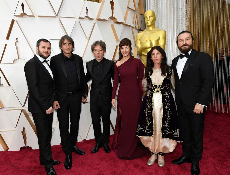 92nd Annual Academy Awards - Red Carpet HOLLYWOOD, CALIFORNIA - FEBRUARY 09: Cinematographer Fejmi Daut, Hatidze Muratova, film editor Atanas Georgiev, film director Ljubo Stefanov, macedonian filmmaker Tamara Kotevska and film cinematographer Samir Ljuma attend the 92nd Annual Academy Awards at Hollywood and Highland on February 09, 2020 in Hollywood, California. (Photo by Kevork Djansezian/Getty Images) (KEVORK DJANSEZIAN/Getty Images)