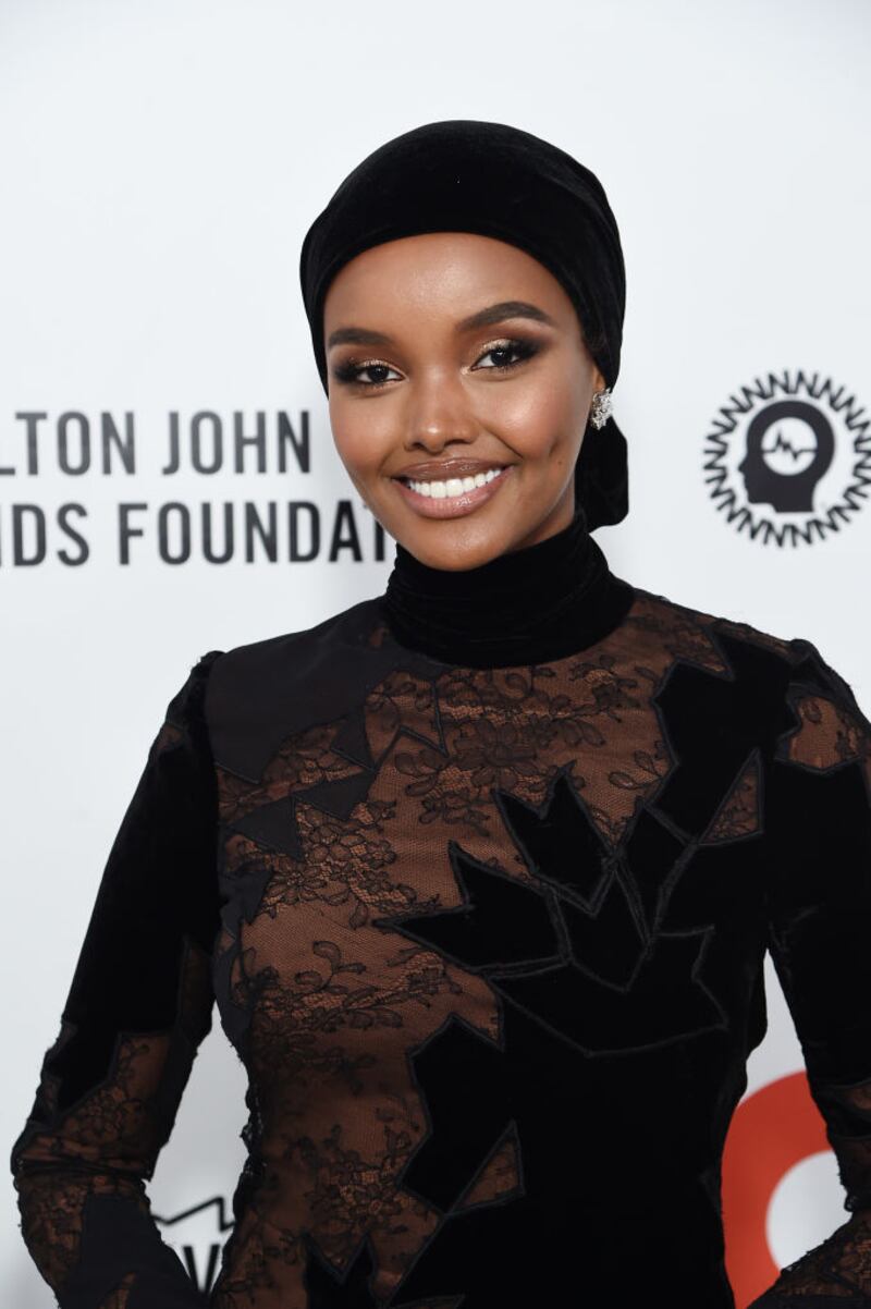 28th Annual Elton John AIDS Foundation Academy Awards Viewing Party Sponsored By IMDb, Neuro Drinks And Walmart - Red Carpet WEST HOLLYWOOD, CALIFORNIA - FEBRUARY 09: Halima Aden attends the 28th Annual Elton John AIDS Foundation Academy Awards Viewing Party sponsored by IMDb, Neuro Drinks and Walmart on February 09, 2020 in West Hollywood, California. (Photo by Jamie McCarthy/Getty Images for EJAF) (Jamie McCarthy/Getty Images for EJAF)
