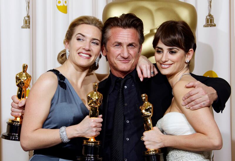 Sean Penn Sean Penn, winner of the best actor Oscar for "Milk," is joined by Kate Winslet, left, best actress for "The Reader," and best supporting actress Penelope Cruz for "Vicky Cristina Barcelona," during the 81st Academy Awards Sunday, Feb. 22, 2009, in the Hollywood section of Los Angeles. (AP Photo/Matt Sayles) (Matt Sayles/ASSOCIATED PRESS)