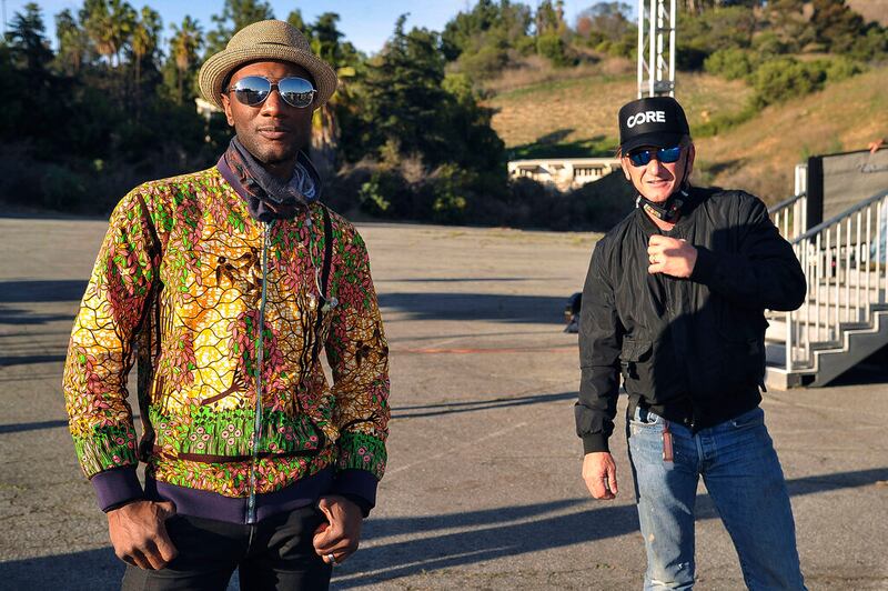 Sean Penn Aloe Blacc, left, and Sean Penn pose for a photo at Rock 'N' Relief on Friday, March, 5, 2021, in Los Angeles. (Richard Shotwell/Invision/AP) (Richard Shotwell/Richard Shotwell/Invision/AP)
