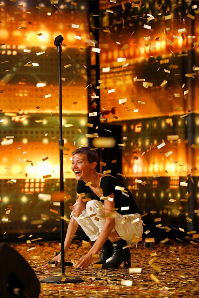 'America's Got Talent’ star Nightbirde dies from cancer at 31 AMERICA'S GOT TALENT -- "Quarterfinals Results 1" Episode 1610 -- Pictured: (l-r) Simon Cowell, Sofia Vergara, Terry Crews, Heidi Klum, Nightbirde (on screen), Howie Mandel -- (Photo by: Chris Haston/NBC/NBCU Photo Bank via Getty Images) (NBC/NBCU Photo Bank via Getty Images)