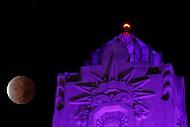 Photos: Beaver moon lunar eclipse delights skygazers The moon is seen during a lunar eclipse next to the One World Trade Center in New York early on November 19, 2021. (YUKI IWAMURA/AFP via Getty Images)