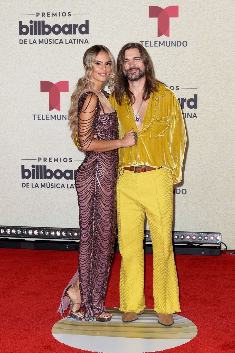 Photos: Stars shine on the Billboard Latin Music Awards 2021 red carpet Karen Martínez and Juanes on the red carpet at the Watsco Center in Coral Gables, Florida, on September 23, 2021. (Alexander Tamargo/Telemundo/Photo Bank)