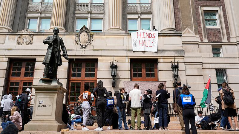 Police arrest nearly 300 in protests at Columbia University, CCNY Demonstrators from the pro-Palestine encampment barricade themselves inside Hamilton Hall, an academic building at Colombia University, on April 30, 2024 in New York City. Pro-Palestinian demonstrators marched around the "Gaza Solidarity Encampment" at Columbia University as a 2 P.M. deadline to clear the encampment given to students by the university passed. The students were given a suspension warning if they do not meet the deadline. Columbia students were the first to erect an encampment in support of Palestine, with students demanding that the school divest from Israel amid the Israel-Hamas war, where more than 34,000 Palestinians have been killed in the Gaza Strip. (Alex Kent/Getty Images)