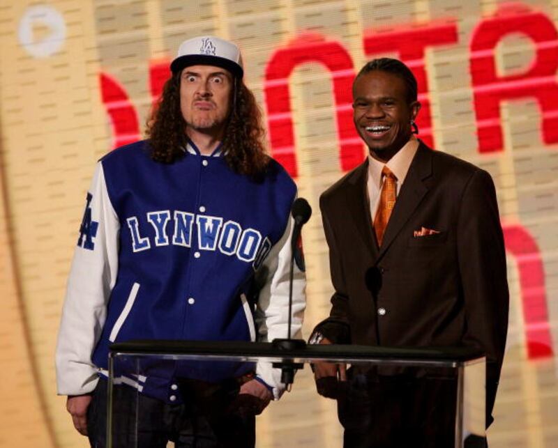 Photos: 'Weird Al' Yankovic through the years 2006: Weird Al Yankovic and Chamillionaire present the Country Favorite Male Artist award onstage at the 2006 American Music Awards held at the Shrine Auditorium on November 21, 2006, in Los Angeles. (Ethan Miller/Getty Images)