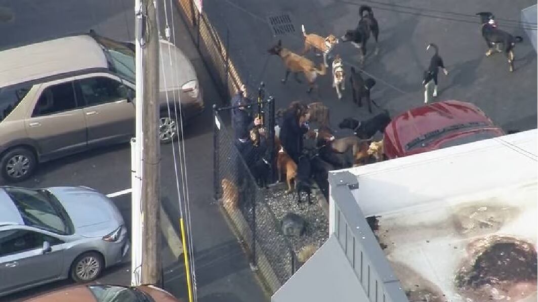Dogs were running loose, but thankfully employees at neighboring businesses helped keep them under control, along with help from animal control officers.