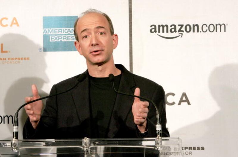 Through the years Founder and CEO of Amazon.com Jeff Bezos speaks during the Tribeca Film Festival partnership press conference at the Tribeca Cinemas March 3, 2005 in New York City. (Photo by Paul Hawthorne/Getty Images) (Paul Hawthorne/Getty Images)