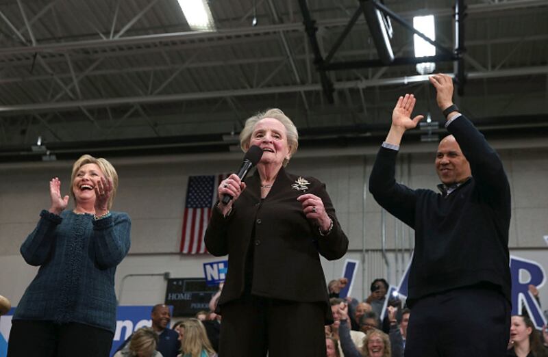 Through the years CONCORD, NH - FEBRUARY 06: (L-R) Demoncratic presidential candidate former Secretary of State Hillary Clinton, former Secretary of State Madeleine Albright and U.S. Sen. Cory Booker (D-NJ) participate in a get out the vote organizing event at Rundlett Middle School on February 6, 2016 in Concord, New Hampshire. With less than one week to go before the New Hampshire primaries, Hillary Clinton continues to campaign throughout the state. (Photo by Justin Sullivan/Getty Images) (Justin Sullivan/Getty Images)