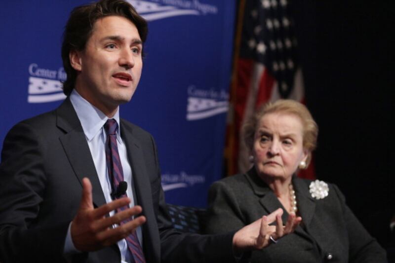 Through the years WASHINGTON, DC - OCTOBER 24: Canadian Parliament Liberal Party member Justin Trudeau (L) and former Secretary of State Madeleine Albright participate in a panel discussion during a conference commemorating the 10th anniversary of the Center for American Progress in the Astor Ballroom of the St. Regis Hotel October 24, 2013 in Washington, DC. Co-founded by former Clinton Administration Chief of Staff John Podesta, the liberal public policy research and advocacy organization is a think tank that rivals conservative policy groups, such as the Heritage Foundation and the American Enterprise Institute. (Photo by Chip Somodevilla/Getty Images) (Chip Somodevilla/Getty Images)
