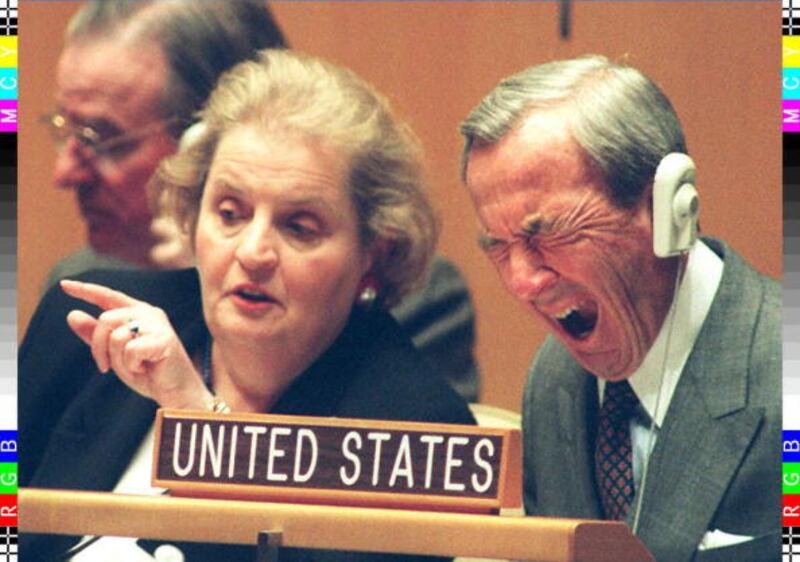 Through the years WASHINGTON, DC - APRIL 17: Picture dated 17 April 95 shows US Secretary of State Warren Christopher yawning while US Ambassador Madeleine Albright talks during opening statements at the United Nations Conference on the Nuclear Non-Proliferation Treaty. US President Bill Clinton has named Madeleine Albright as his new secretary of state. (Photo credit should read BOB STRONG/AFP via Getty Images) (BOB STRONG/AFP via Getty Images)
