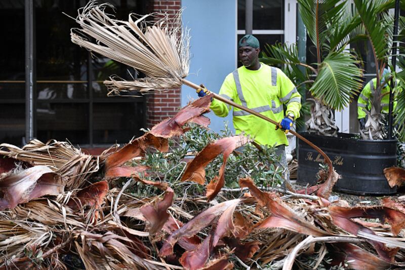 Hurricane Ian batters Florida SAINT PETERSBURG, FLORIDA - SEPTEMBER 29: A local worker cleans debris in downtown Saint Petersburg after Hurricane Ian passed through the area on September 29, 2022 in Saint Petersburg, Florida. The hurricane brought high winds, storm surge and rain to the area causing severe damage. (Photo by Gerardo Mora/Getty Images) (Gerardo Mora/Getty Images)