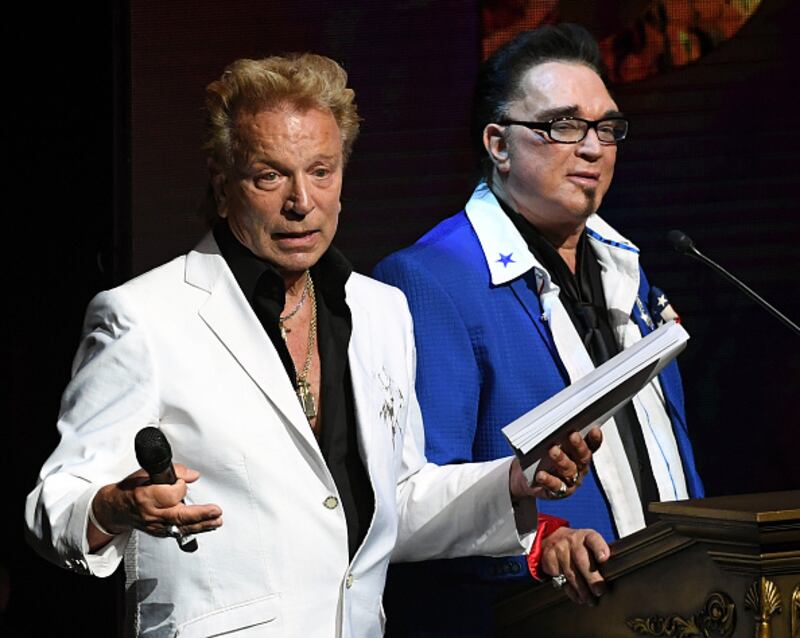 Siegfried & Roy through the years LAS VEGAS, NV - SEPTEMBER 12: Siegfried Fischbacher (L) and Roy Horn speak during Criss Angel's HELP (Heal Every Life Possible) charity event at the Luxor Hotel and Casino benefiting pediatric cancer research and treatment on September 12, 2016 in Las Vegas, Nevada. (Photo by Ethan Miller/Getty Images) (Ethan Miller/Getty Images)