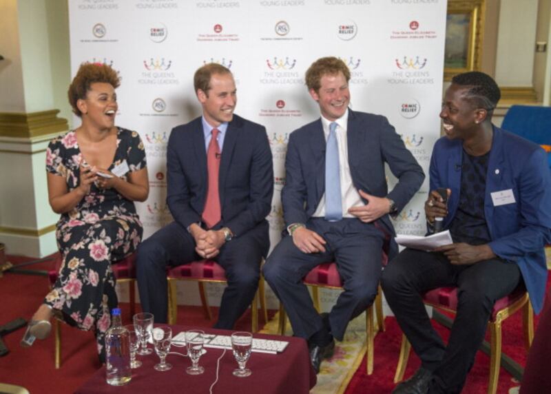 Jamal Edwards LONDON, ENGLAND - JULY 9: Gemma Cairney, Prince William, Duke of Cambridge, Prince Harry and Jamal Edwards during the launch of The Queen's Young Leaders Programme at Buckingham Palace on July 9, 2014 in London, England. (Photo by Arthur Edwards - WPA Pool/Getty Images) (WPA Pool/Getty Images)