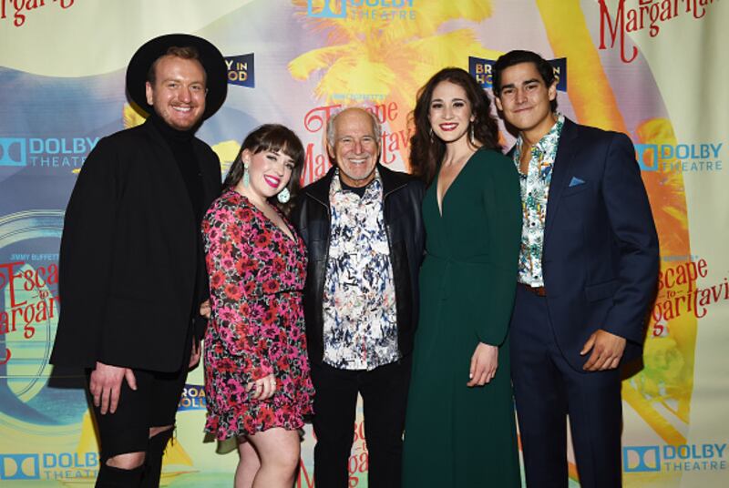 Jimmy Buffett HOLLYWOOD, CALIFORNIA - FEBRUARY 18: Musician Jimmy Buffett (C) and cast members arrive at Jimmy Buffett's "Escape To Margaritaville" L.A. Premiere Engagement at the Dolby Theatre on February 18, 2020 in Hollywood, California. (Photo by Amanda Edwards/Getty Images) (Amanda Edwards/Getty Images)