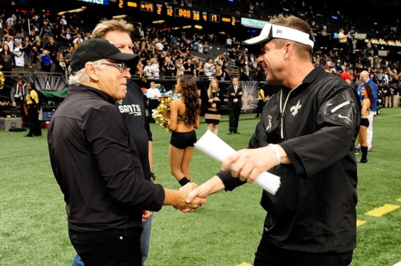 Jimmy Buffett NEW ORLEANS, LA - NOVEMBER 10: Sean Payton, head coach of the New Orleans Saints, greets musician Jimmy Buffett following a game against the Dallas Cowboys at the Mercedes-Benz Superdome on November 10, 2013 in New Orleans, Louisiana. New Orleans defeated Dallas 49-17. (Photo by Stacy Revere/Getty Images) (Stacy Revere/Getty Images)