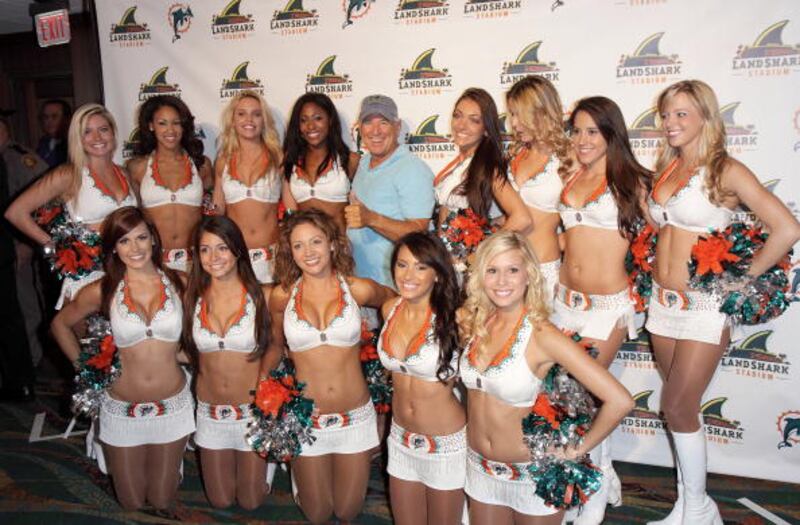 Jimmy Buffett MIAMI GARDENS, FL - MAY 08: Jimmy Buffett poses with Miami Dolphins Cheerleaders for the renaming of Dolphin Stadium to LandShark Stadium on May 8, 2009 in Miami Gardens, Florida. (Photo by Alexander Tamargo/Getty Images) (Alexander Tamargo/Getty Images)