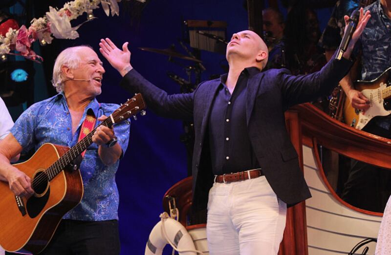Jimmy Buffett NEW YORK, NY - JUNE 15: Jimmy Buffett and Pitbull onstage as Pitbull makes his broadway debut guest starring in the hit Jimmy Buffett Musical "Escape to Margaritaville" on Broadway at The Marquis Theatre on June 15, 2018 in New York City. (Photo by Bruce Glikas/Bruce Glikas/FilmMagic) (Bruce Glikas/Bruce Glikas/FilmMagic)
