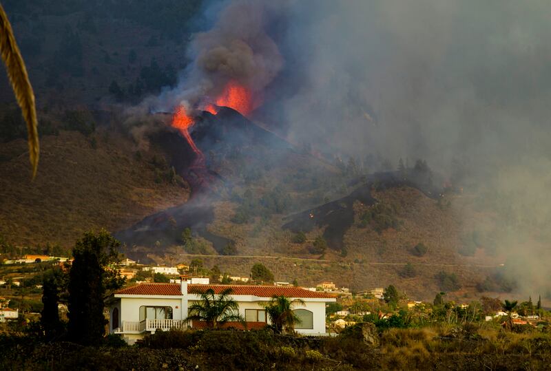 Photos: Volcano on Spain's Canary Islands erupts, sparking mass evacuations Lava flows from an eruption of a volcano at the island of La Palma in the Canaries, Spain, Sunday, Sept. 19, 2021. A volcano on Spain's Atlantic Ocean island of La Palma erupted Sunday after a weeklong buildup of seismic activity, prompting authorities to evacuate thousands as lava flows destroyed isolated houses and threatened to reach the coast. (AP Photo/Jonathan Rodriguez)