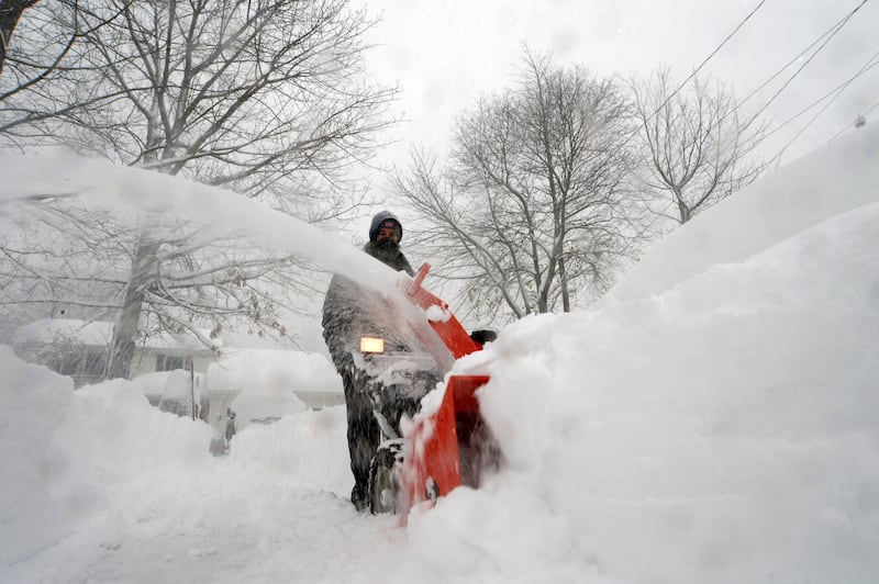 Intense Winter Storm Brings Multiple Feet Of Lake Effect Snow To Buffalo Area HAMBURG, NY - November 18: Denis Marszalkowski uses a snowblower to dig out after an intense lake-effect snowstorm impacted the area on November 18, 2022 in Hamburg, New York. Around Buffalo and the surrounding suburbs, the snowstorm resulted in up to four feet of accumulation, and additional snowfall is forecast for the weekend. (Photo by John Normile/Getty Images) (John Normile/Getty Images)
