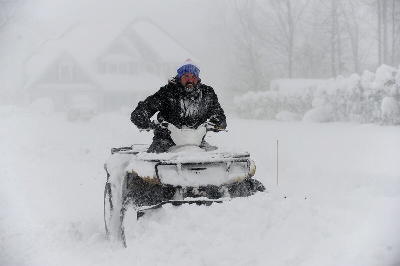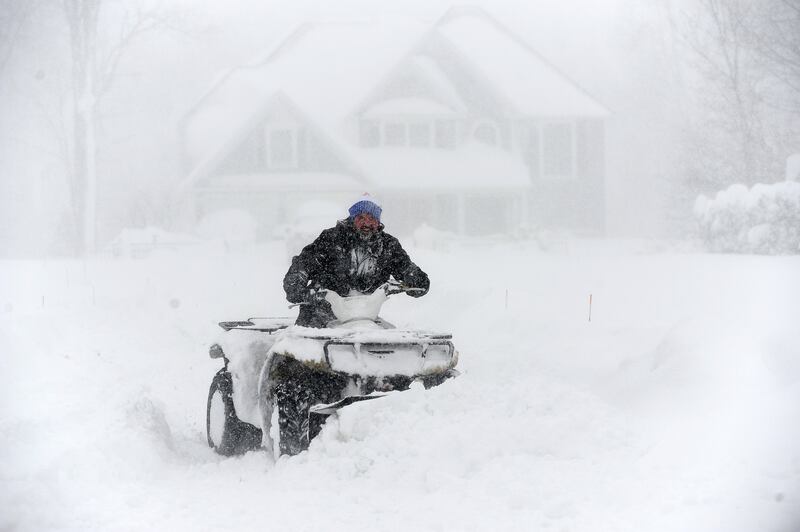 Intense Winter Storm Brings Multiple Feet Of Lake Effect Snow To Buffalo Area HAMBURG, NY - November 18: Robert Skimin uses an ATV to dig out after an intense lake-effect snowstorm impacted the area on November 18, 2022 in Hamburg, New York. Around Buffalo and the surrounding suburbs, the snowstorm resulted in up to four feet of accumulation, and additional snowfall is forecast for the weekend. (Photo by John Normile/Getty Images) (John Normile/Getty Images)