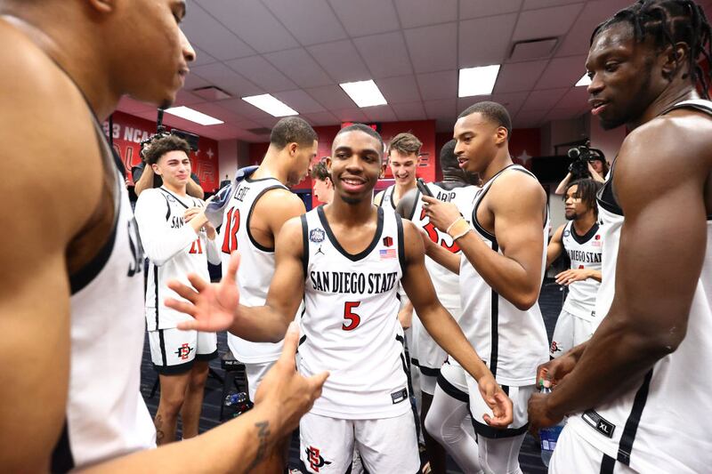 San Diego State’s Jaedon LeDee hit a short jumper to cut FAU’s lead to 71-70. After FAU’s Johnell Davis missed a contested layup, the Aztecs did not call a timeout and got the ball to Butler, who let the basketball fly with about two seconds to play. He drained the shot, which sent his teammates racing onto the floor to celebrate.