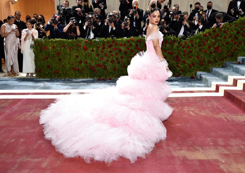 2022 Met Gala Tessa Thompson attends The Metropolitan Museum of Art's Costume Institute benefit gala celebrating the opening of the "In America: An Anthology of Fashion" exhibition on Monday, May 2, 2022, in New York. (Photo by Evan Agostini/Invision/AP) (Evan Agostini/Evan Agostini/Invision/AP)