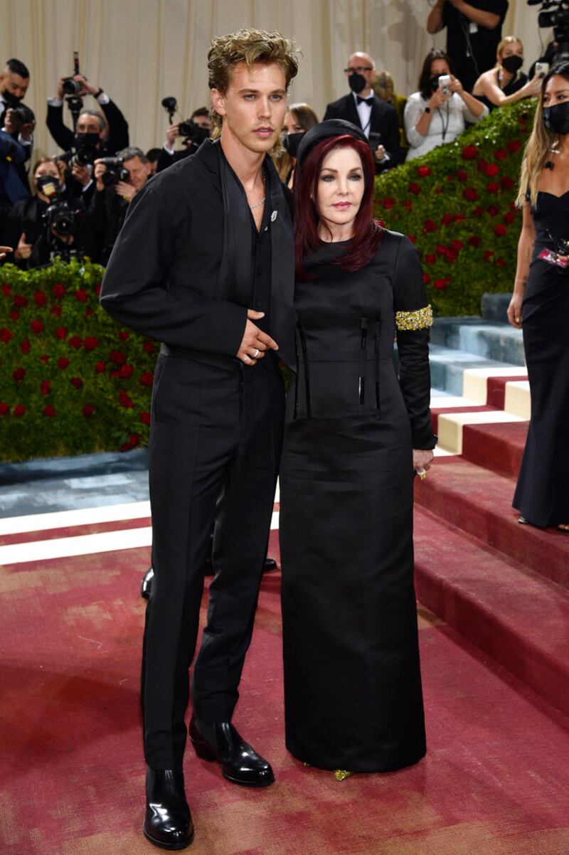 2022 Met Gala Austin Butler, left, and Pricilla Presley attends The Metropolitan Museum of Art's Costume Institute benefit gala celebrating the opening of the "In America: An Anthology of Fashion" exhibition on Monday, May 2, 2022, in New York. (Photo by Evan Agostini/Invision/AP) (Evan Agostini/Evan Agostini/Invision/AP)
