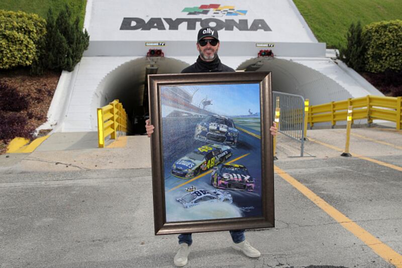 Through the years DAYTONA BEACH, FLORIDA - AUGUST 29: Jimmie Johnson, driver of the #48 Ally Chevrolet, poses with a painting of the #48 car presented to him prior to the NASCAR Cup Series Coke Zero Sugar 400 at Daytona International Speedway on August 29, 2020 in Daytona Beach, Florida. (Photo by Chris Graythen/Getty Images) (Chris Graythen/Getty Images)