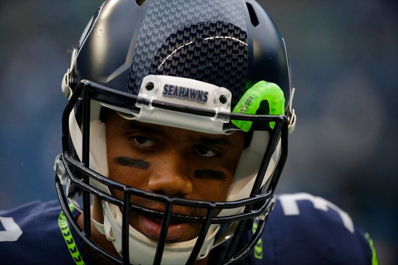 Russell Wilson Seattle Seahawks quarterback Russell Wilson passes during warmups before an NFL football game against the San Francisco 49ers, Sunday, Dec. 14, 2014, in Seattle. (AP Photo/Elaine Thompson) (Elaine Thompson/AP)